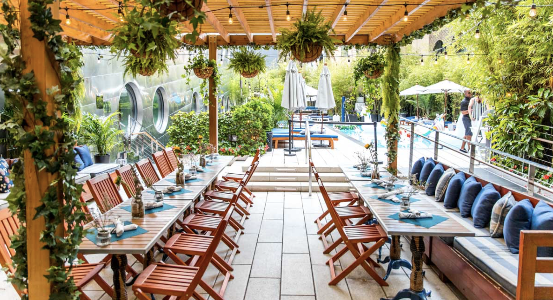One of the lesser-known properties in the group, DUMBO House, has a rooftop pool that offers unparalleled views over the East River and Manhattan. Expect soft, shaded daybeds positioned around a 40-foot pool. There are no phones allowed, which makes it the ideal spot to sit back, relax, and enjoy time with friends.